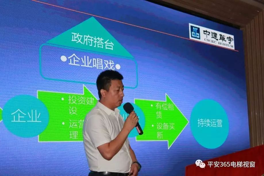 北京中建華宇機(jī)電工程有限公司作為老樓加裝電梯工程運(yùn)營管理和五星級維保服務(wù)商,總經(jīng)理胡志勇就老樓加裝電梯創(chuàng)新模式及實(shí)施運(yùn)營方案發(fā)表了主題演講。